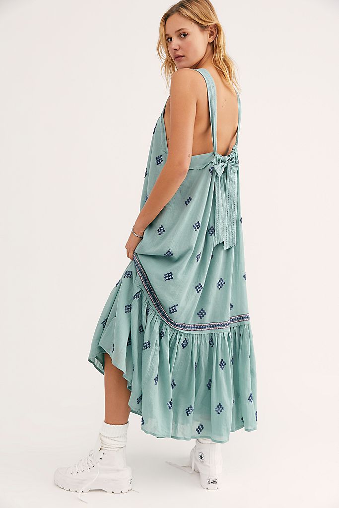 The seafoam, dreamy, embroidered dress is the epitome of the bohemian style. This dress jumped straight to the top of my Free People wish list with the flattering deep v neck line, adjustable straps and open back displaying a cool, relaxed summer dress to release my inner floaty vibes. I am such a fanatic for a bow at the back of a dress or added detailing as it’s a dress that not only compliments your front but also from behind. I really hope to own this dress one day… mum, please?