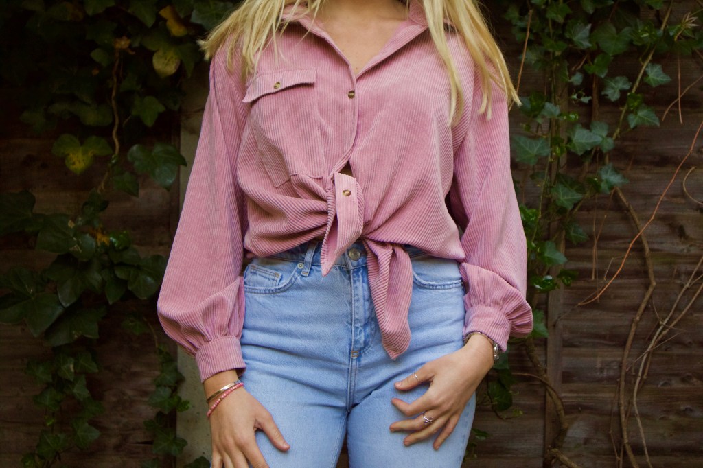 Casual, oversized and easy are the perfect words to describe this pastel pink corduroy shirt. The oversized silhouette, button-down front and pointed collar is perfect to look effortlessly cool whilst still feeling feminine with the beautiful shade of pink. Tie at the waist and jump into a pair of light washed, high waist mom jeans and kick on some pastel pink trainers to accentuate a minimalist style.